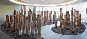 What do you think about the idea that the context in which the burial poles are currently displayed transforms them into ‘art as architectural feature’ rather than presenting them as a stand-alone, significant installation of important works of art? As Greg Castillo expressed it, speaking of the Quai Branly display of Aboriginal art in a comment below, this approach has the potential to turn Aboriginal artists into ‘interior contractors’ and, by extension, their works of art into decorator pieces.